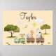 A cute poster for the nursery room with baby animals in a train! You can personalise this poster with the name you want, replace it with other text or good wish or simply delete it if you don't want any text!
