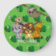 Cute Jungle Animals Rainforest Green Name Cartoon Large Clock