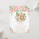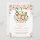 Cute Jungle Animals Safari Pink Floral Baby Shower Invitation