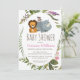 This cute design features a lion, monkey, and a rhino surrounded by a botanical leaf pattern with pink and purple flowers.. This popular typography can be customised to change the colour and font style or keep it as it is for your convenience. So cute for a girl baby shower.