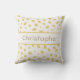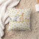 A baby elephant, giraffe, zebra, cheetah, and a lion are featured against a cute tan coloured animal print pattern background in a soft yellow and white colour. On the back of the pillow, you can personalise with the name of your choice.