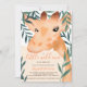 A little wild one is on the way! Celebrate your baby coming with this jungle safari baby shower theme featuring a cute and adorable wild giraffe chewing a paper with greenery watercolor leaves and an elegant script font.