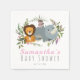 These cute jungle safari baby shower paper napkins feature a rhino, monkey, and a lion complemented by botanical leaf accents with pink flowers. Personalise with your name and the date of your event. Perfect napkins for a girl baby shower with a jungle safari theme.