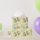 Gender reveal wrapping paper you can customise and personalise for that baby shower you're giving. Against a background of yellow and multi-coloured polka dots are facing watercolor kangaroo mothers with baby joeys in their pouches. Moms wear non-matching floral headpieces. The girl kangaroo baby has a floral hat matching her moms. However, the boy baby has a deep blue bow tie as he rides around in his limo pouch. Above the adorable hand-painted watercolor kangas are Boy? or Girl? in blue and pink respectively. The line above that has the parents' names to totally personalise this yellow baby shower wrapping paper.