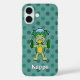 What's a kappa? Kappa are river monsters in Japanese mythology who love cucumbers! This cute cartoon kappa is double-wielding some cukes! He appears on a polka dot background with his name down below. But you can personalise the case by replacing the kappa's name with your own or an alternative short message!