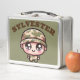 Make lunchtime extra fun with this Cute Kawaii Army Camouflage metal lunch box, featuring a playful monogram on a warm green background. The adorable camouflage design, inspired by kawaii style, adds a cheerful touch, perfect for kids who love a bit of adventure. The personalised monogram makes it uniquely theirs, turning this lunch box into a one-of-a-kind accessory. Sturdy and practical, it’s ideal for carrying snacks and meals while showing off a fun, stylish design that’s sure to stand out in the cafeteria.