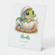 Cute Kawaii Baby Alligator Hatching Drinks Pedestal Sign
