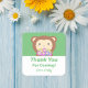 Cute Kawaii Cartoon Monkey Thank You For Coming Square Sticker