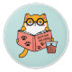 Illustration of cute Kawaii cat reading a book with the title "How to train your human" and drinking coffee