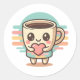 Cute Kawaii Coffee Cup Round Sticker Pastel Hear