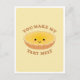 Cute Kawaii Egg Tart Food Pun Love Quote Postcard with the lettering of 'You Make My Tart Melt' is a perfect affectionate and lighthearted greeting to your loved ones. Cute kawaii and smiling egg tart with pastel colour background will warm hearts of your valentines, friends, families, relatives, girlfriends, boyfriends, spouses, or food pun lovers.