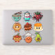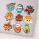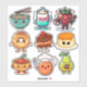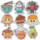 Adorable Kawaii food stickers. This sheet includes a cute bowl of ramen noodles, a cup of coffee, a strawberry with a rose and gift, a pecan caramel donut, chocolate cake, caramel custard, a bowl of chili, a meatball in chef hat with a fork and a cute pear holding a chocolate candy bar.