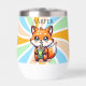 Cute baby fox holding a boba or bubble tea Kawaii cartoon. Personalised water bottle.