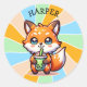 Cute Kawaii Fox with Bubble Tea Personalised Classic Round Sticker