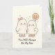 Say “boo” the sweet way. This Halloween greeting card features two kawaii ghosts holding hands with a pumpkin balloon—soft pastels, gentle smiles, and loads of cosy fall vibes. Perfect for partners, besties, or the kiddo who loves spooky-cute.