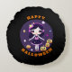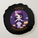 Cute Kawaii Girl in Pumpkins Halloween Round Cushion