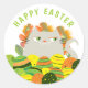 Cute, floral, unique Happy Easter sticker with kawaii kitty cat, colourful eggs and flowers.