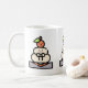 Cute smiling Kagami mochi and orange. The "mirror rice cake" is a traditional Japanese New Year decoration. It consists of two round mochi (rice cakes), the smaller placed atop the larger, and a daidai (a Japanese bitter orange).
