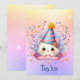 Send purr-fect birthday wishes with our cute Kawaii kitty cat greeting card! This adorable cat wearing a party hat amidst confetti on a pastel glitter background will make their day! 🐾🎉 #catbirthdaycard #kawaiicatparty