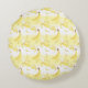 A very cute and kawaii monkey holding a banana, the background in yellow tones and banana pattern. seen here on this cute round pillow