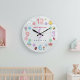 The soft pastel color palette and cheerful illustrations create a warm, inviting atmosphere. Easily customize this clock with your child's name and a large central initial to create a one-of-a-kind keepsake. Whether it's for a first birthday gift or a room refresh, this functional piece of art makes learning to tell time a joyful experience.