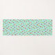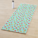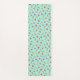 Adorable tropical fruit patterned yoga mat features an allover pattern of smiling pineapples and watermelons on a summery turquoise background. A quirky and cute design for anyone who loves the kawaii style.