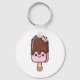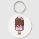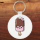 Adorable pink ice cream popsicle with chocolate coating and sprinkles.