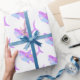 This fun wrapping paper features adorable boho artwork of a happy smiling kawaii style shark in lavender purple and aqua blue.