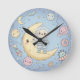 Cute Kawaii Space - Astronaut and Smiling Moon Round Clock