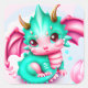 Cute Kawaii Teal and Pink Baby Dragon, this design features a Cute Kawaii Teal and Pink Baby Dragon.