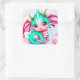 Cute Kawaii Teal and Pink Baby Dragon Square Sticker