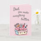 Make Dad smile with this adorably heartfelt greeting card featuring a cheerful pink toolbox filled with happy kawaii tools and hearts! The playful design and sweet message, "Dad, you make everything better," is perfect for Father’s Day, birthdays, or just to say thank you.