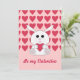 Personalise and customise Adorable white bunny with purple paws and red heart Valentine's Day pink invitation colour by ©PLdesign.
