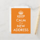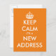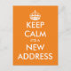 Cute keep calm moving postcard for new address / relocation or housewarming party. Make your own funny keep calm and carry on parody design for your new house. Keepcalm humour for change of address concerning home and business company location. Change quantity to get the cheapest price per post card. Cheerful bright orange or custom background colour. Vintage typography template with crown.