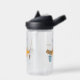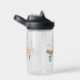 Super cute kid water bottle featuring a charming polar bear holding a fishing rod and a bucket of fish . Personalise it with the child's name using the template .