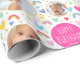Celebrate the magic of turning two with this cute and colourful wrapping paper! A fun template, with the phrase "Happy Birthday" in trendy script lettering, and personalised with your child's photo and name. Colourful rainbows, hearts, stars, and the all-important birthday age are repeated throughout the pattern. Perfect for celebrating kids' 1st, 2nd, 3rd, 4th or 5th early years, and a delightful addition to your gift wrap! Printed colours: bright and pastel hues, with pink, red, yellow, green, blue and white. Shop the online collection for more popular product ideas for children's birthday celebrations!