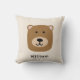 Cute brown bear kids baby throw pillow - personalise with your own name or choice of text to the front, bear head pattern to reverse. Matching items available. Original art from artists own illustrations. Please use the message me button below for help with further customisation and special requests. © Zoe Chapman Design