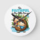 Cute kids Bible verse clock with text: "Be faithful in the little things" from Luke 16:10. Makes a great meaningful and decorative gift for a children's bedroom or Sunday school classroom. Illustration of sister Myriam taking care of little baby Moses in a basket.