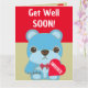 Cute Kids Blue Teddy Bear with Heart Get Well Soon Card