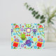 A cute cartoon robot postcard! This bright fun children's post card features cute robots and some gears in a pattern children will love.