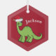 Cute Kids Christmas Dinosaur Red Custom Glass Tree Decoration