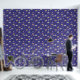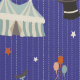 Cute circus pattern wallpaper with circus tents, unicycles, toys and funny hats on blue background. The perfect wallpaper for nurseries or any other kids room.