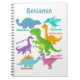 A lovely colourful Dinosaur Notebook with cute cartoon dinosaurs and their names in a fun bright font. Dinosaurs - Tyrannosaurus Rex ( T-Rex), Pteranodon, Brontosaurus, Ankylosaurus, Plesiosaurus, Velociraptor, and a Stegosaurus. This notebook makes a great personalised back-to-school, birthday or Christmas gift for a young fan of prehistoric dinos! Personalise with your choice of name.