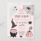 Trick or treat! Cute kids pink Halloween illustrations party, perfect Halloween bash with cute illustrations featuring a ghost, spider web, cute spiders, little pumpkins, carved pumpkins, witch's potion cauldron, with hat. All the illustrations colours are fully editable so you can create your own colour palette.