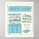 Cute Kitchen Illustration Blue Personalised Name Poster