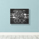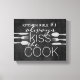 This cute kitchen wrapped canvas quote wall art has white text always kiss the cook on distressed dark charcoal grey shabby chic style. Wall art for kitchen decor.