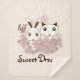 The product design features adorable bunny and kitten holding pink flowers. This pretty animal cartoon makes a cute and unique Sherpa blanket with personalised text for kids - Sweet Dreams.