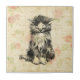 Cute Kitten Antique Cat with Floral Flower Design Tile