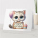 Kitten holding a board saying Happy Birthday