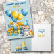 Cute Kitten Blue Gold Balloons Kid's Birthday Card